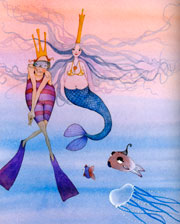 King Tlo is so eager to enlarge his kingdom that one fine day he decides to swim down the bottom of the ocean. On his way down he meets strange and beautiful creatures who, from the humblest little fish to the Queen of the Oceans, teach him that there is something more important than Reasons of State, Riches and Power. You want to know what it is? Then follow this adventurous discovery of the ocean depths. Once upon a time there was a king named Tlo who was very concerned about the size of his kingdom. One day he decided to measure his territory, inch by inch. Armed with a ruler, a set square, a folding rule and a compass, he climbed to the tops of the mountains and went down again to the sea shore, calculating the extent of his possessions. At the end, most unhappily, he had to admit that his kingdom was no bigger than those of his neighbours!